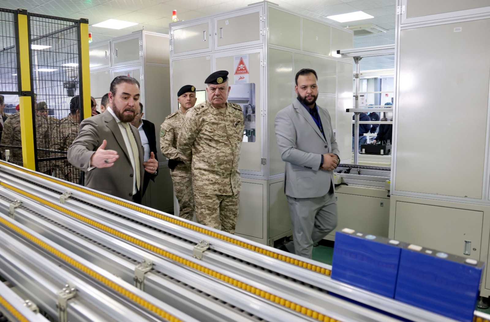 واستمع اللواء الركن الحنيطي بحضور عدد من كبار ضباط القوات المسلحة إلى إيجاز قدمه الرئيس التنفيذي للمصنع منذ تأسيسه عام 2016، ودوره في تصنيع بطاريات الليثيوم الخاصة بالأنظمة الدفاعية والمُسيرات وأنظمة الاتصالات وكوابل الألياف الضوئية، موضحاً اعتماد المصنع على المعايير الدولية في الصناعة والتقنيات الحديثة.