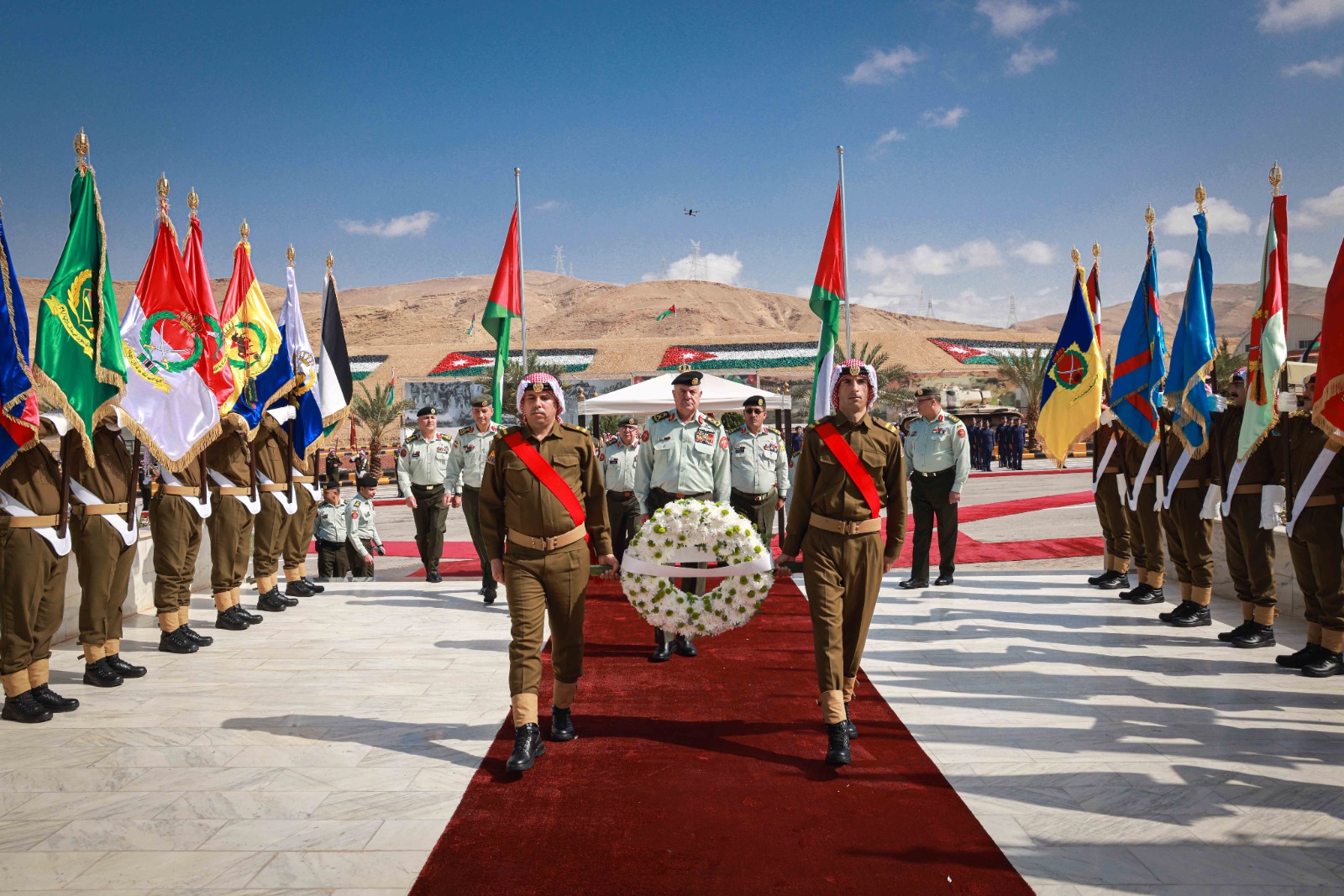 ولدى وصول رئيس هيئة الأركان المشتركة موقع الاحتفال، كان في استقباله عدد من كبار ضباط القوات المسلحة، واستعرض اللواء الركن الحنيطي حرس الشرف الذي اصطف لتحيته.