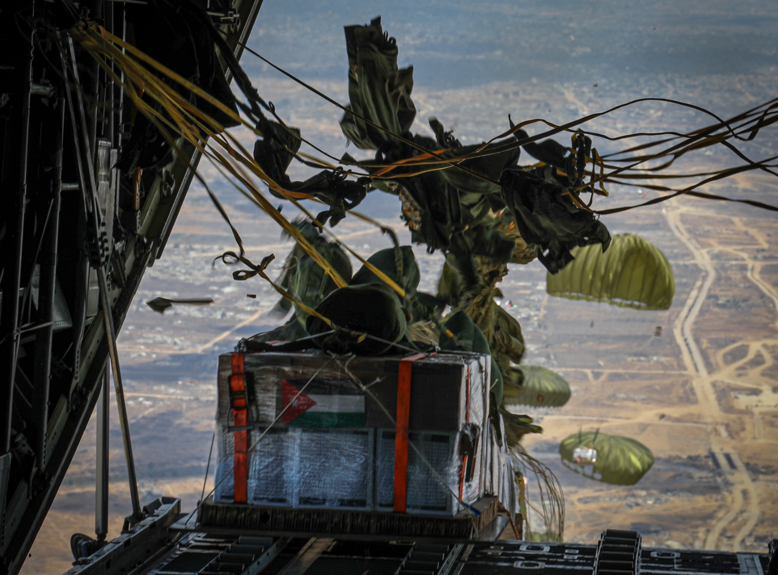 وفي مجال الإغاثة، نفذت القوات المسلحة ومنذ بدء الحرب على قطاع غزة 164 إنزالا جويا أردنيا، و400 إنزال جوي بالتعاون مع الدول الشقيقة والصديقة، بمجموع 564 إنزالا جويا، نقلت نحو 4420 طنا من المساعدات الإنسانية والطبية، كما نقلت نحو 125 طنا من الأدوية والمساعدات العاجلة بواسطة الطائرات العامودية من خلال 102 رحلة جوية للجسر الجوي، كما سيرت 150 قافلة إغاثية بالتعاون مع الهيئة الخيرية الهاشمية إلى قطاع غزة والضفة الغربية، ضمت 7456 شاحنة محملة بمساعدات بلغ وزنها الإجمالي 149120 طنا.
