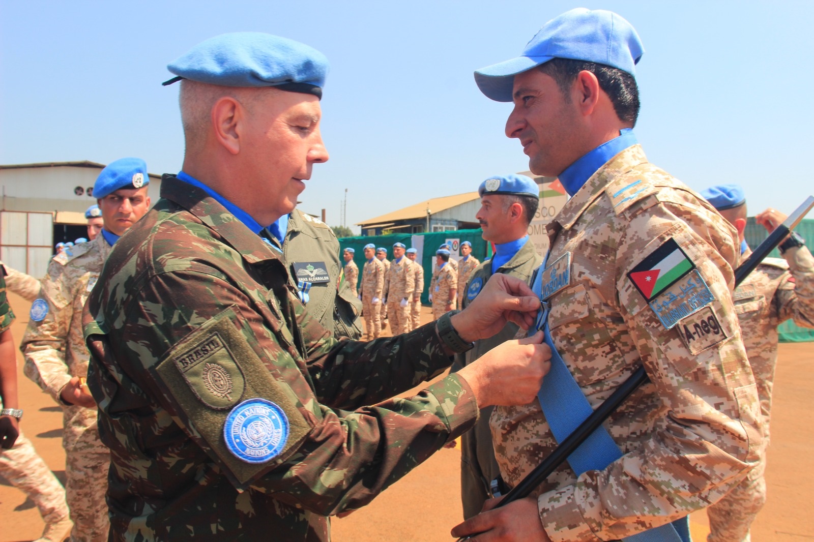 قلّد قائد قوات بعثة منظمة الأمم المتحدة لتحقيق الاستقرار في جمهورية الكونغو الديمقراطية (المونسكو)، الفريق أول غوميز، اليوم الخميس، مرتبات وحدة الطائرات العامودية (الكونغو/1)، ميداليات الأمم المتحدة للخدمة المتميزة، تقديراً لجهودهم المبذولة في دعم الأمن والاستقرار ضمن منطقة عمليات البعثة.وأكد قائد الوحدة أن هذا الإنجاز يجسّد التوجيهات الملكية السامية للقائد الأعلى للقوات المسلحة الأردنية، جلالة الملك عبدالله الثاني ابن الحسين، مشيراً إلى أن منتسبي الجيش العربي سيبقون دوماً رسل سلام، يؤدّون واجباتهم الإنسانية والمهنية بكل إخلاص وتفانٍ، تحت راية الوطن والقيادة الهاشمية.من جانبه، أشاد الفريق أول غوميز بالمستوى الاحترافي والانضباط العالي الذي تتمتع به القوات المسلحة الأردنية – الجيش العربي، وبسمعتها المتميزة بين الوحدات الدولية العاملة ضمن بعثات الأمم المتحدة، مثمّناً ما تقدمه من نموذج يُحتذى في الالتزام والجاهزية والكفاءة.ويأتي هذا التكريم، الذي حضره عدد من ضباط هيئة أركان البعثة وقادة الوحدات الدولية وممثلون عن المجتمع المحلي، تتويجاً لعام كامل من العمل المتواصل والبذل والعطاء، وما قامت به الوحدة من دور محوري في تنفيذ مختلف الواجبات الجوية والأرضية بكفاءة عالية واقتدار مهني، أسهم في تعزيز قدرات البعثة وتحقيق أهدافها العملياتية والإنسانية.