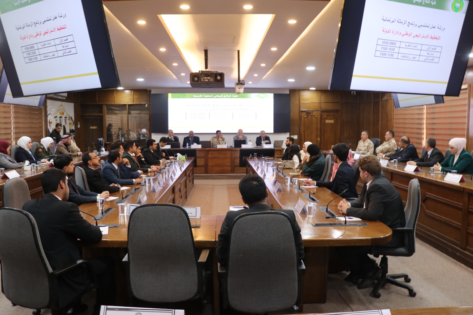 وقال آمر كلية الدفاع الوطني الملكية الأردنية في كلمة له: "إننا نفخر في الكلية بعقد مثل هذه الورشات، لما لها من دور مهم في بناء جيل واعٍ بقضايا وطنه وأمته، من خلال توسيع آفاق الحوار والتشاور وتعزيز المعرفة بين المشاركين"، مؤكداً أن هذه الورشة التدريبية ستشكل إضافة نوعية، لما تتضمنه من موضوعات تتعلق بالتخطيط الاستراتيجي والقضايا الوطنية المستجدة.
