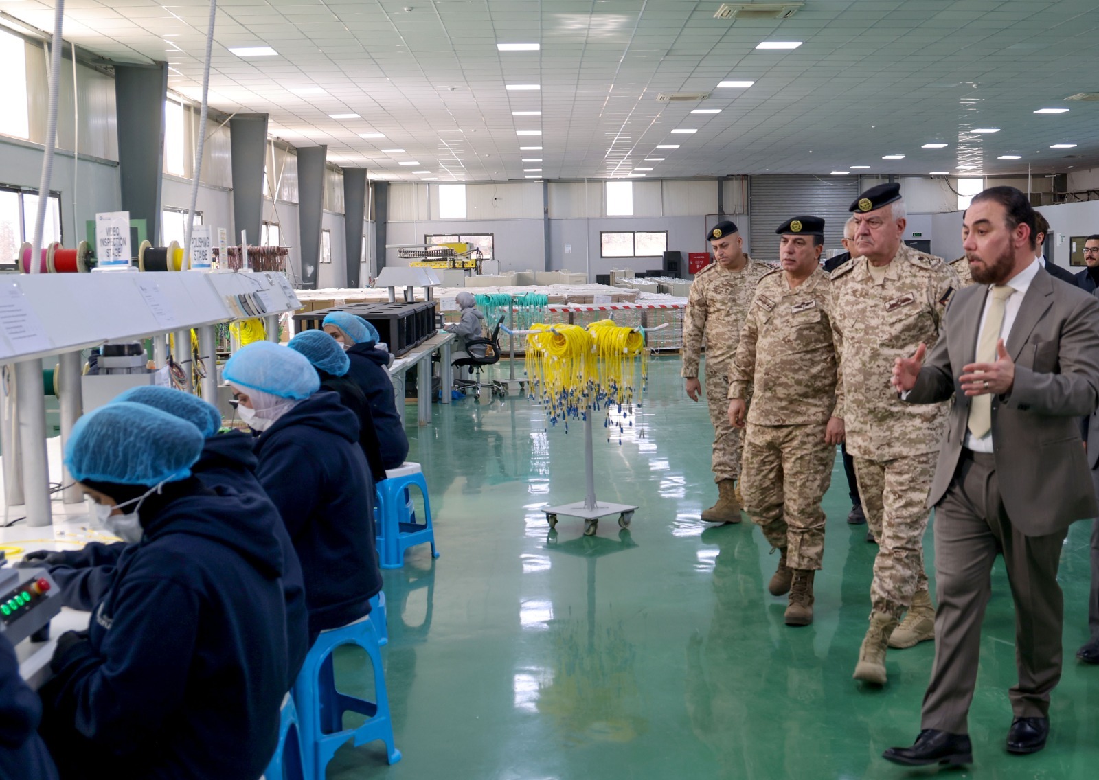 واستمع اللواء الركن الحنيطي بحضور عدد من كبار ضباط القوات المسلحة إلى إيجاز قدمه الرئيس التنفيذي للمصنع منذ تأسيسه عام 2016، ودوره في تصنيع بطاريات الليثيوم الخاصة بالأنظمة الدفاعية والمُسيرات وأنظمة الاتصالات وكوابل الألياف الضوئية، موضحاً اعتماد المصنع على المعايير الدولية في الصناعة والتقنيات الحديثة.