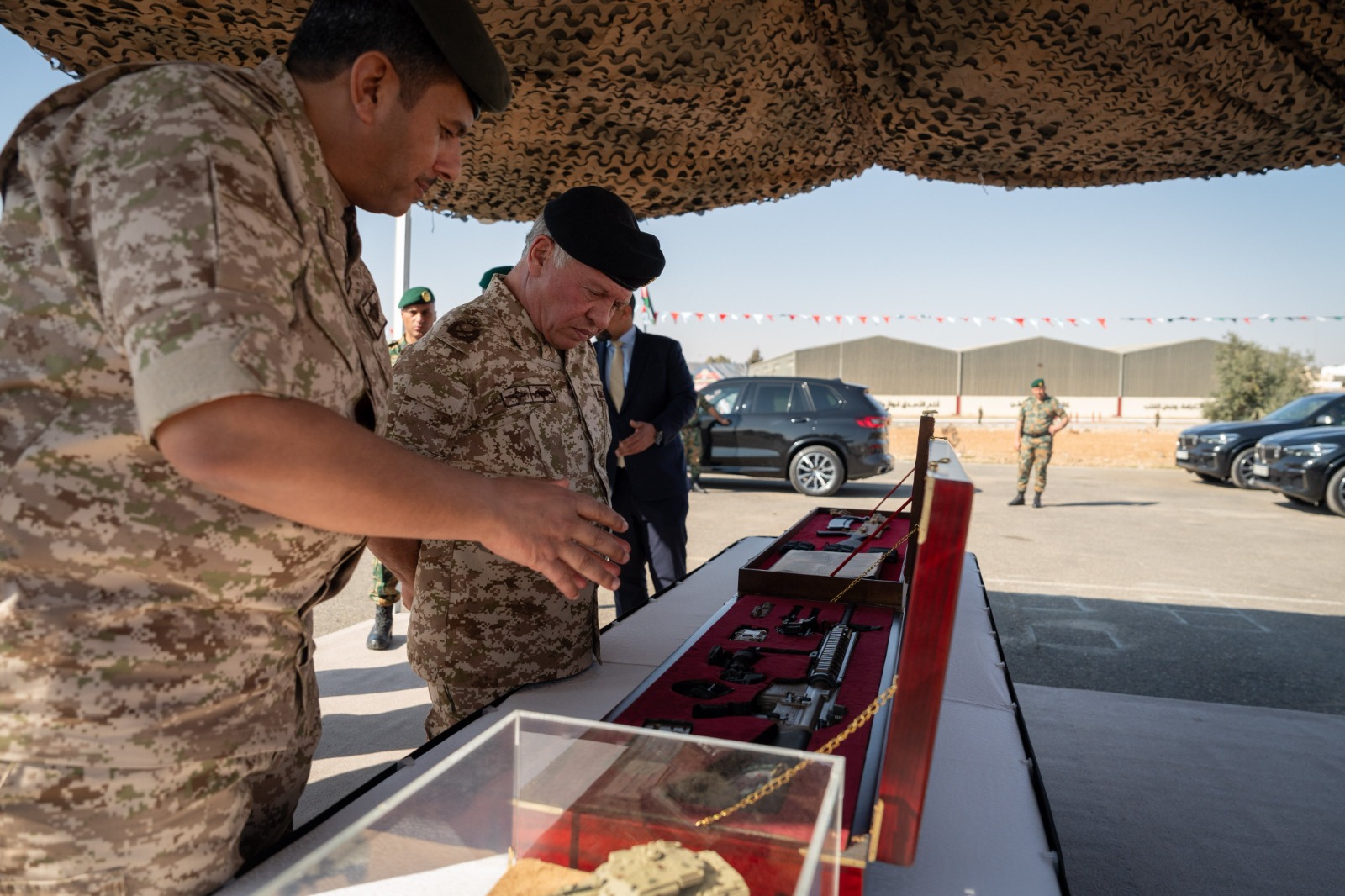 His Majesty King Abdullah II, the Supreme Commander of the Jordan Armed Forces-Arab Army, on Tuesday visited the Al Hussein Main Workshop Command, part of the Royal Maintenance Corps.According to a royal court statement, His Majesty was briefed on the tasks and duties of the workshops, recent updates, and their role in providing technical support for army units and formations and maintaining their technical and combat readiness.The King also viewed an exhibition of military devices, equipment, and vehicles manufactured and developed in the workshops.His Majesty commended the efforts of the armed forces in protecting the nation's borders and safeguarding its resources, commending the advanced level of the Royal Maintenance Corps.