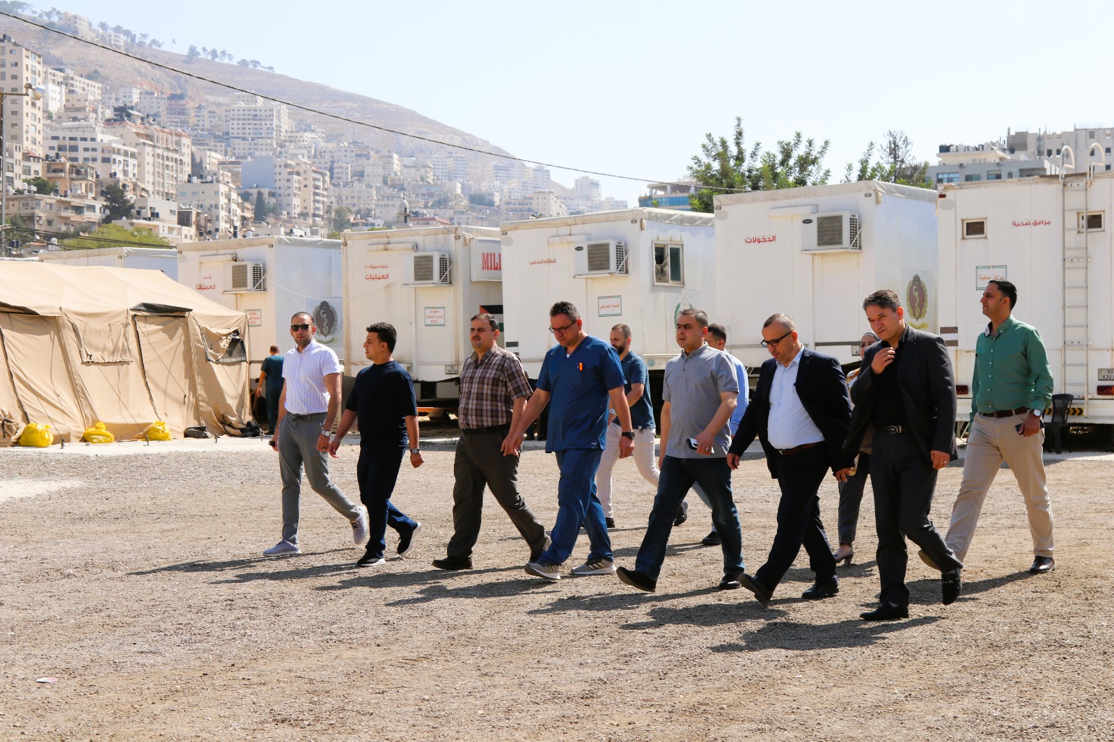 On Monday, Dr. Haitham Al-Hadari, Director General of Palestinian Hospitals, accompanied by his delegation, visited the Jordanian Field Hospital Nablus/8.The delegation was briefed by the hospital commander on the medical specialties available at the hospital, as well as the nature of the medical, therapeutic, and humanitarian services provided to all segments of society under the current circumstancesThe delegation toured various departments and facilities of the hospital, expressing appreciation for the significant role and humanitarian mission carried out by the hospital staff in delivering comprehensive medical and relief support. They affirmed that these efforts reflect the stance of His Majesty King Abdullah II in supporting the Palestinian cause—particularly through the provision of humanitarian, relief, and medical assistance to the Gaza Strip.It is worth noting that the Jordanian Field Hospital in Nablus has been operating around the clock since its deployment, as part of the efforts of field hospitals and surgical stations in the West Bank and Gaza Strip. To date, the hospital has received approximately 5,914 patients.