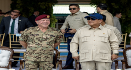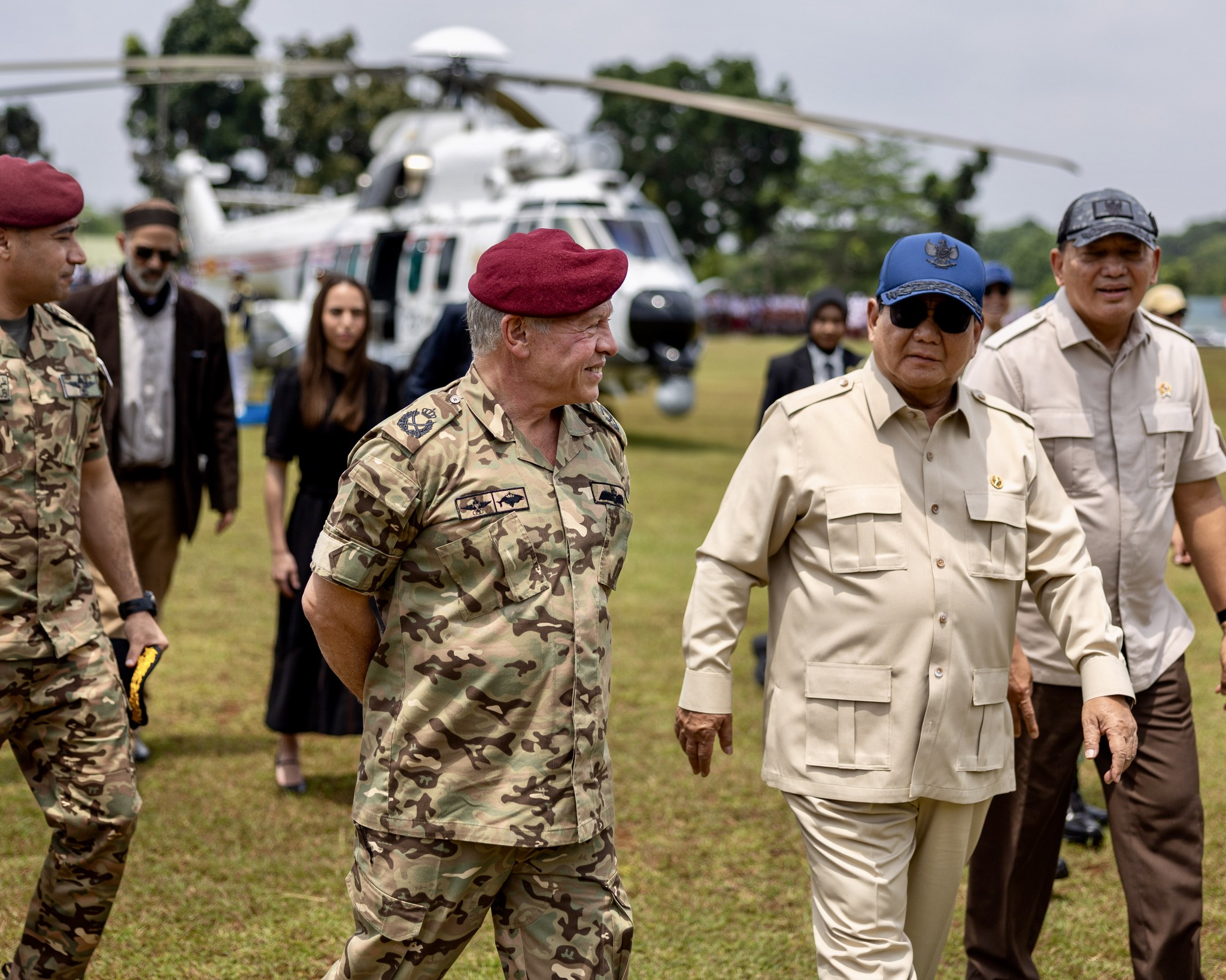 His Majesty King Abdullah II, the Supreme Commander of the Jordan Armed Forces-Arab Army, and Indonesia President Prabowo Subianto attended a joint drone military exercise in Jakarta on Saturday.Conducted jointly by the King Abdullah II Royal Special Forces and their Indonesian counterparts, the exercise focused on utilizing drones to support ground operations.The drill showcased the advanced capabilities of Jordanian-made-drones, particularly first-person view (FPV) drones—for reconnaissance, surveillance, and precision targeting without endangering troops.The exercise is part of efforts to enhance military cooperation between the Special Forces of Jordan and Indonesia, develop joint operational capabilities, and enhance capacities to effectively neutralize multiple threats while ensuring land and airspace security.Their Royal Highnesses Princess Salma bint Abdullah II and Prince Ghazi bin Muhammad, His Majesty’s chief adviser for religious and cultural affairs and personal envoy, as well as Deputy Prime Minister and Minister of Foreign Affairs and Expatriates Ayman Safadi, Chairman of the Joint Chiefs of Staff Major General Yousef Ahmed Al-Huneiti, and the Director of His Majesty’s Office, Eng. Alaa Al-Batayneh attended the exercise.