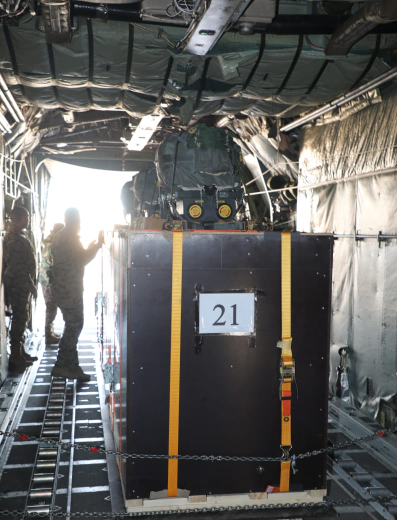 The urgent medical aid was delivered within crates, a measure crucial for safeguarding the safety of the medical supplies.