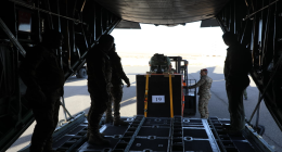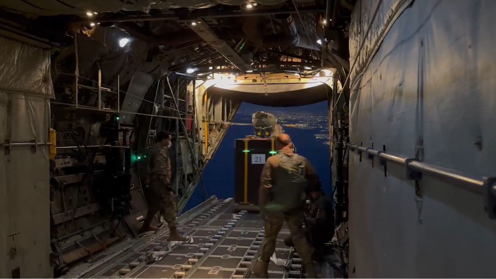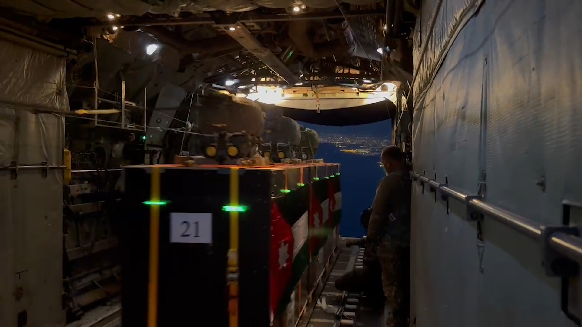 The unloading process was executed using parachutes under the careful control of a specialized crew, ensuring the safe and precise delivery of the aid to its designated location.