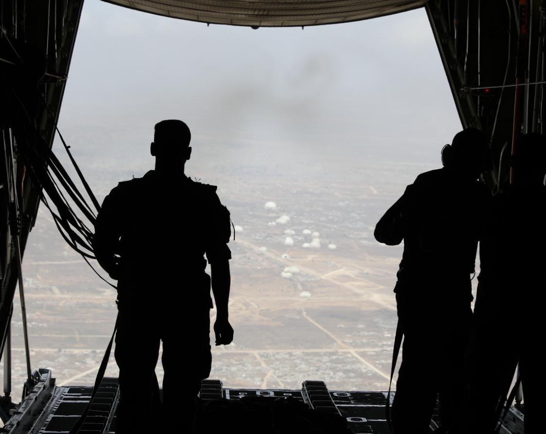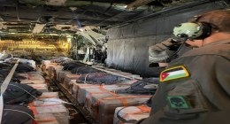 JAF carried out two airdrops on Tuesday to deliver humanitarian and relief aid to the people of the Gaza Strip, in cooperation with the United Arab Emirates, in support of the steadfastness of the Palestinian people and to help alleviate their humanitarian suffering.
